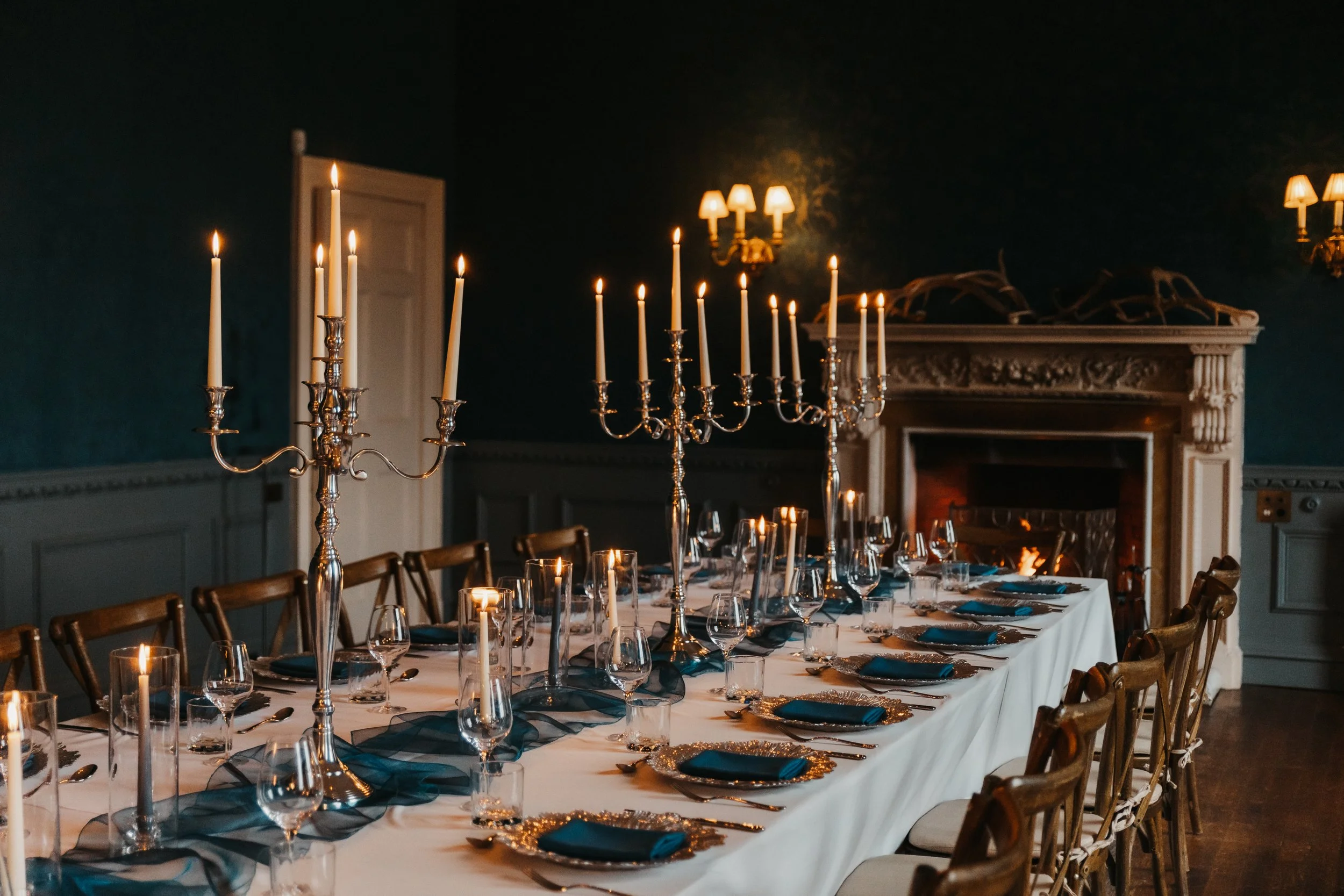Fasque Castle’s interiors truly come into their own during the winter months. Candlelit ceremony spaces, rich textures and open fires create a warm, romantic atmosphere perfect for an intimate celebration.